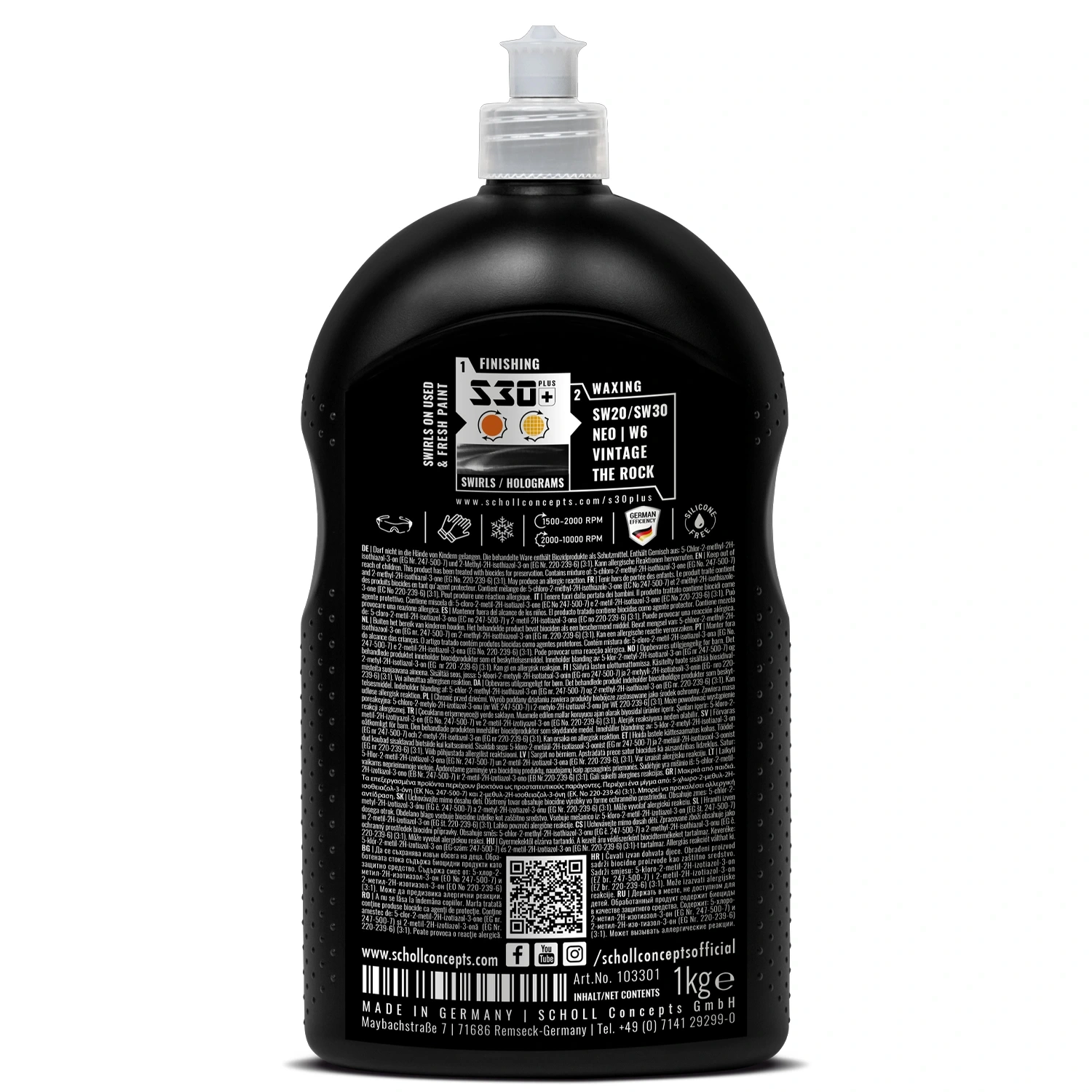 S30+, hem rotary hem de orbital cilalama makineleriyle uygulanabilir. Girdap izleri ve hologramlar etkili bir şekilde giderilebilir. Geleneksel ve çizilmeye dayanıklı boya yüzeylerinde en iyi sonucu verir. Parlak, ayna gibi bir parlaklık sağlar. Yüksek Performanslı Bileşik S30+, koyu boyalarda mükemmel bir son kat sağlar. Mikro incelikte, yüksek saflıkta alüminyum oksit tozu bazlı benzersiz formülü sayesinde, üst kattaki hafif çizikler ve orta düzeyde aşınma ve yıpranma belirtilerinin yanı sıra önceki cilalama uygulamalarından kalan girdap izleri ve hologramlar tek adımda kolayca ve etkili bir şekilde giderilebilir. Kolay temizlenen formülü, geleneksel ve çizilmeye dayanıklı boya yüzeylerinde en iyi işlem özelliklerini sağlar.